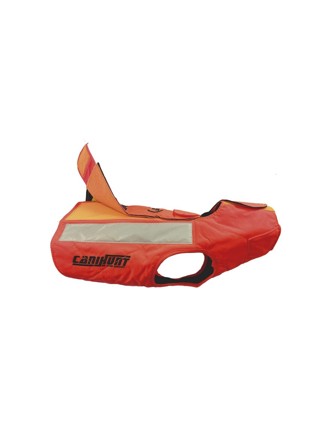El chaleco CaniHunt ECO presenta una estructura sencilla, que aprovecha las principales características de los chalecos de protección y las complementa con flexibilidad y ligereza gracias a su corte reducido a la altura del lomo del perro.