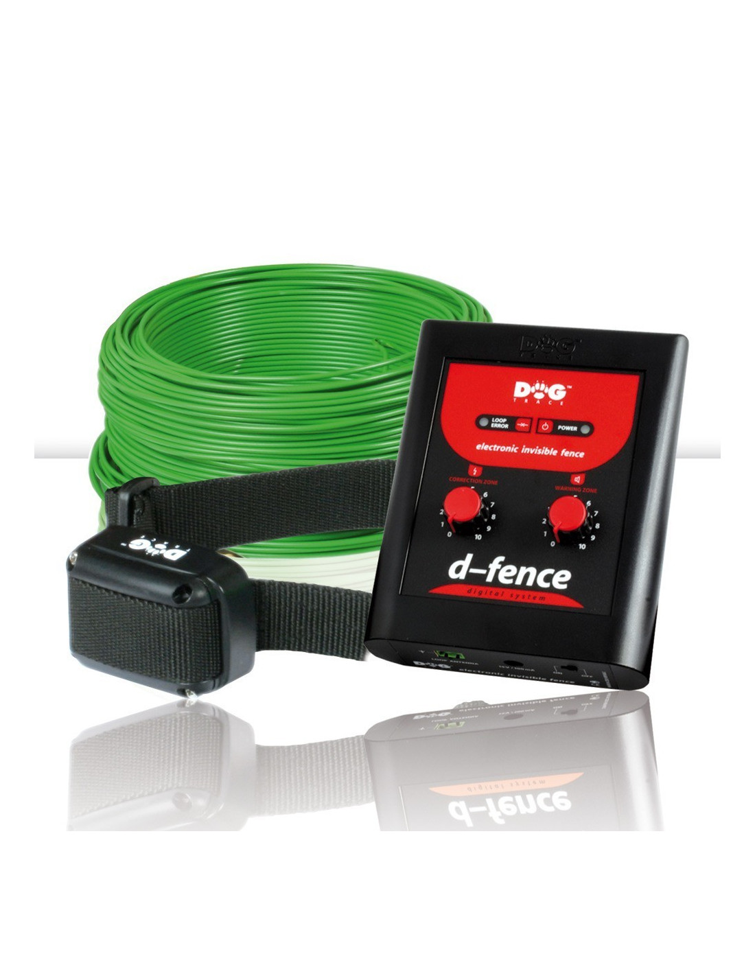 - Componentes del equipo: transmisor de la señal, rollo de 100 m de cable de 0,8 mm y 1 collar receptor.
