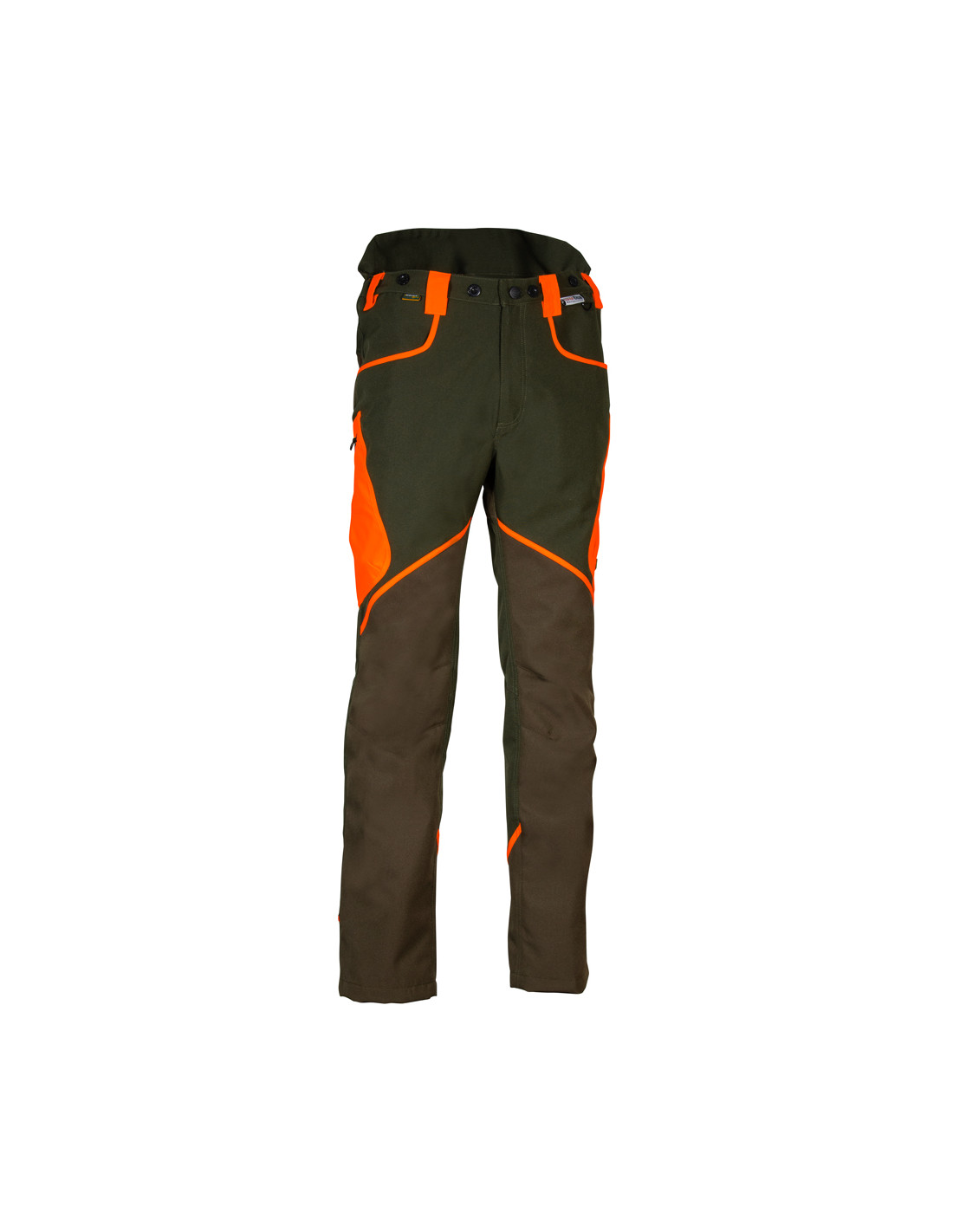 DESCRIPCIÓN: 2 amplios bolsillos delanteros, 2 amplios bolsillos laterales con cierre de cremallera encerada, 2 bolsillos traseros con cierre de cremallera, botones para tirantes, cintura elástica, corte ergonómico de las piernas y rodillas, costuras termoselladas, prenda impermeable, D-Ring, parte trasera de la cintura en relieve, tejido antiabrasión en zonas de mayor estrés: en la parte frontal hasta el fondo de la pierna y en la parte trasera y el tobillo