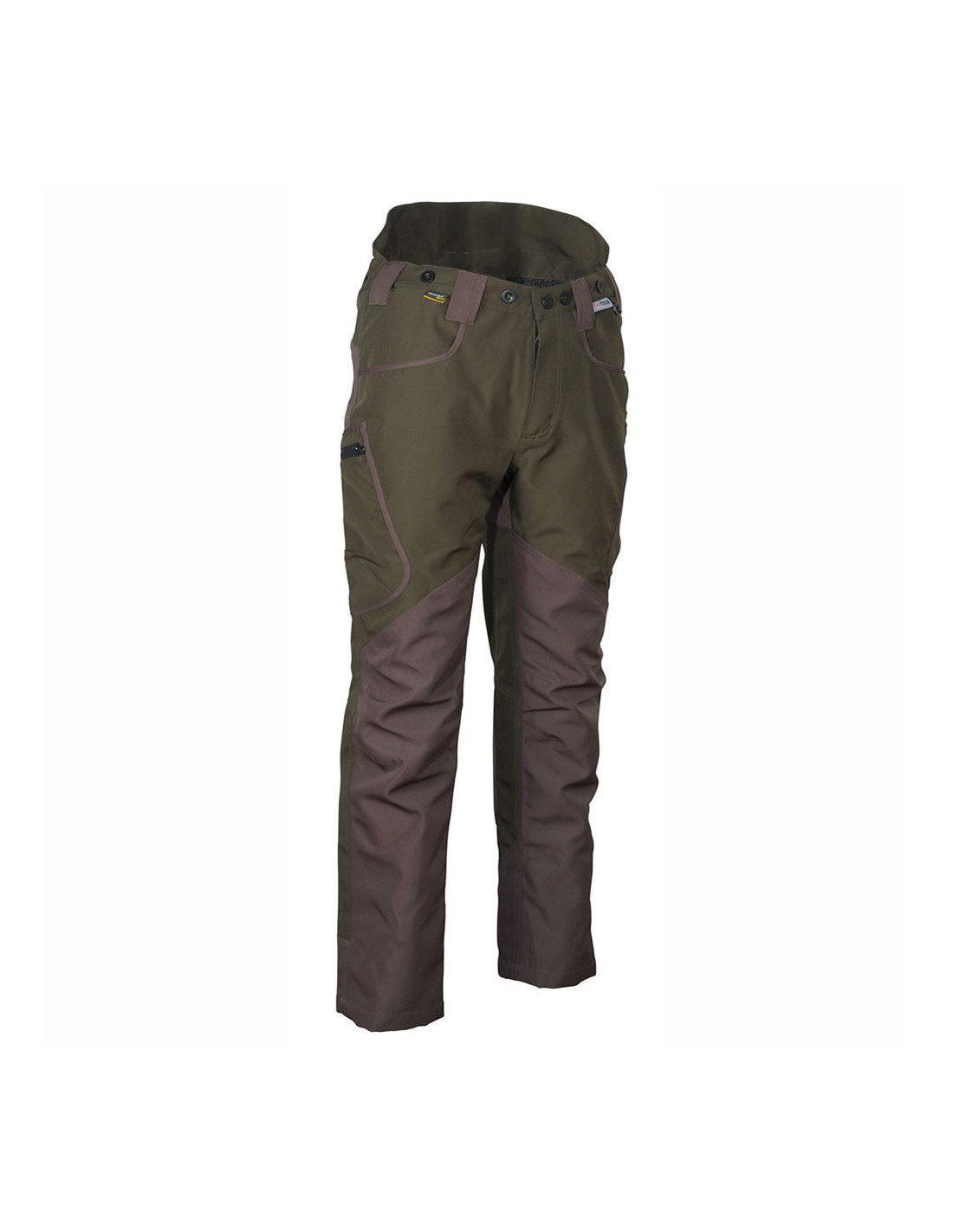 DESCRIPCIÓN: 2 amplios bolsillos delanteros, 2 amplios bolsillos laterales con cierre de cremallera encerada, 2 bolsillos traseros con cierre de cremallera, botones para tirantes, cintura elástica, corte ergonómico de las piernas y rodillas, costuras termoselladas, prenda impermeable, D-Ring, parte trasera de la cintura en relieve, tejido antiabrasión en zonas de mayor estrés: en la parte frontal hasta el fondo de la pierna y en la parte trasera y el tobillo