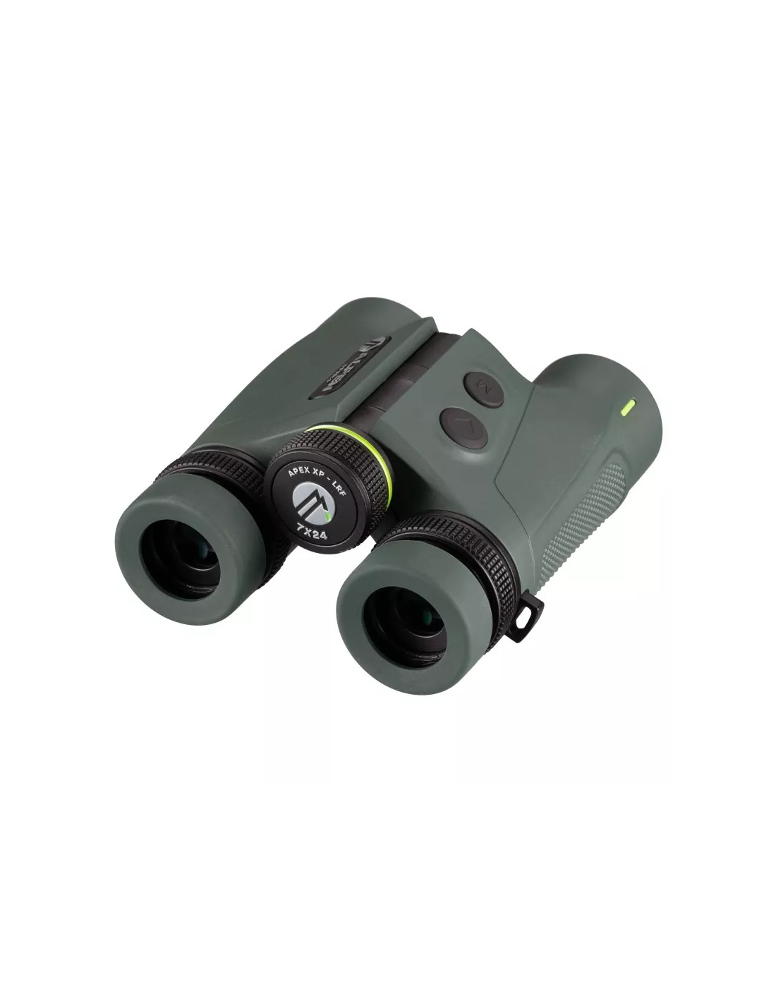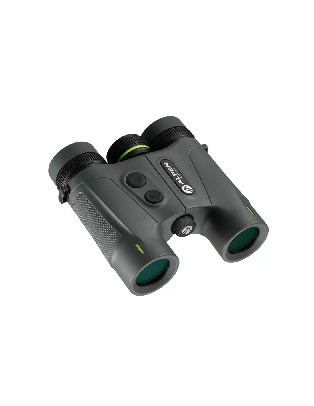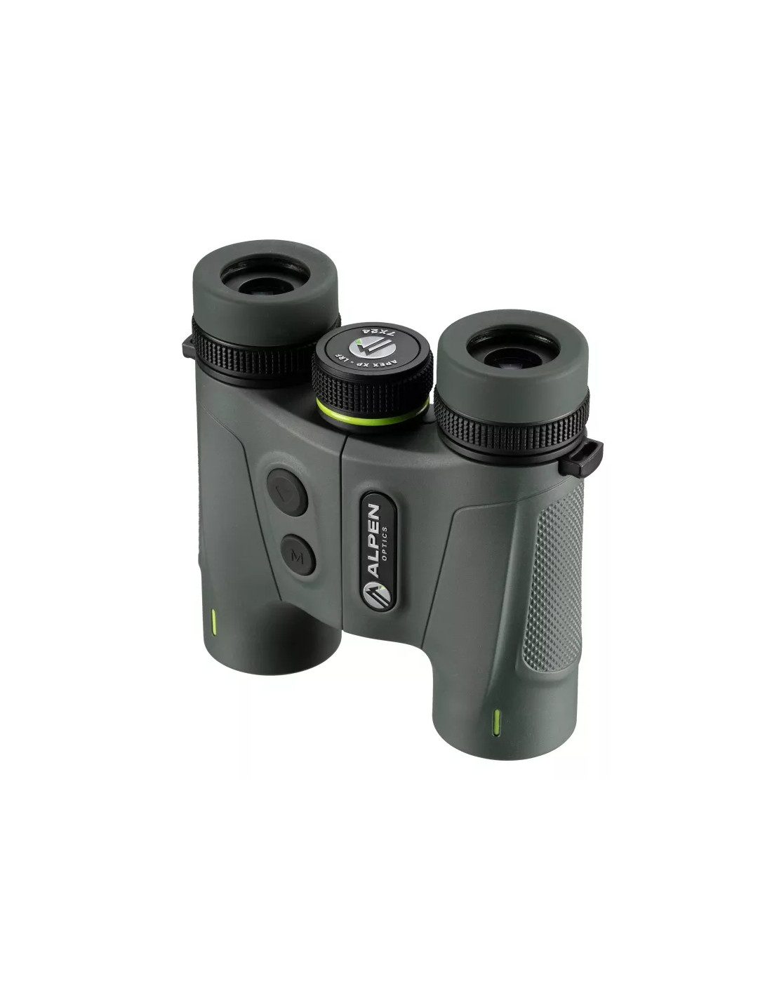 Los prismáticos ALPEN OPTICS Apex XP 8x32 con telémetro son tu compañero sencillo para cualquier aventura. Con sus dimensiones compactas de 139 x 133 x 60 mm, ocupan poco espacio en tu equipaje. El robusto cuerpo está fabricado en PPS resistente. Así, el peso es de solo 750 g, perfecto para largas excursiones sin preocupaciones. Para un manejo agradable incluso en la temporada fría, cuentan con un amplio anillo de zoom central y oculares giratorios. El revestimiento de goma asegura un buen agarre y protege la óptica en caso de impactos.