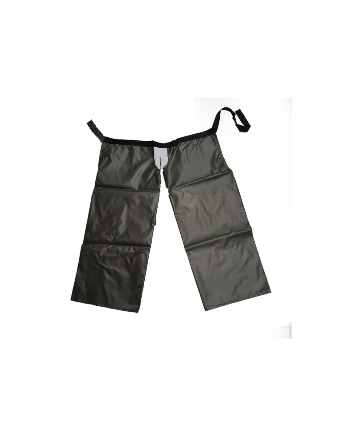 Pernera de lona impermeable fabricada utilizando lona gavina nº3 para el cuerpo, cinta de nylon y hebillas plásticas (clip) para el cinturón, hilo resistente al agua en las costuras y refuerzo delantero de piel vacuna. Pueden utilizarse tanto para el deporte (caza) como para el trabajo (montes).
