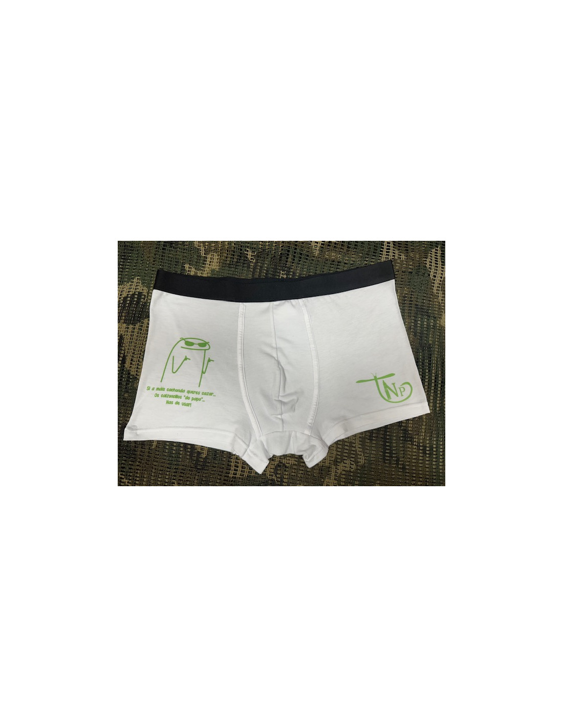 Calzoncillos de la suerte de TNP, con la frase "Si a más cachonda queres cazar... Os calzoncillos "do papo"... Has de usar!"